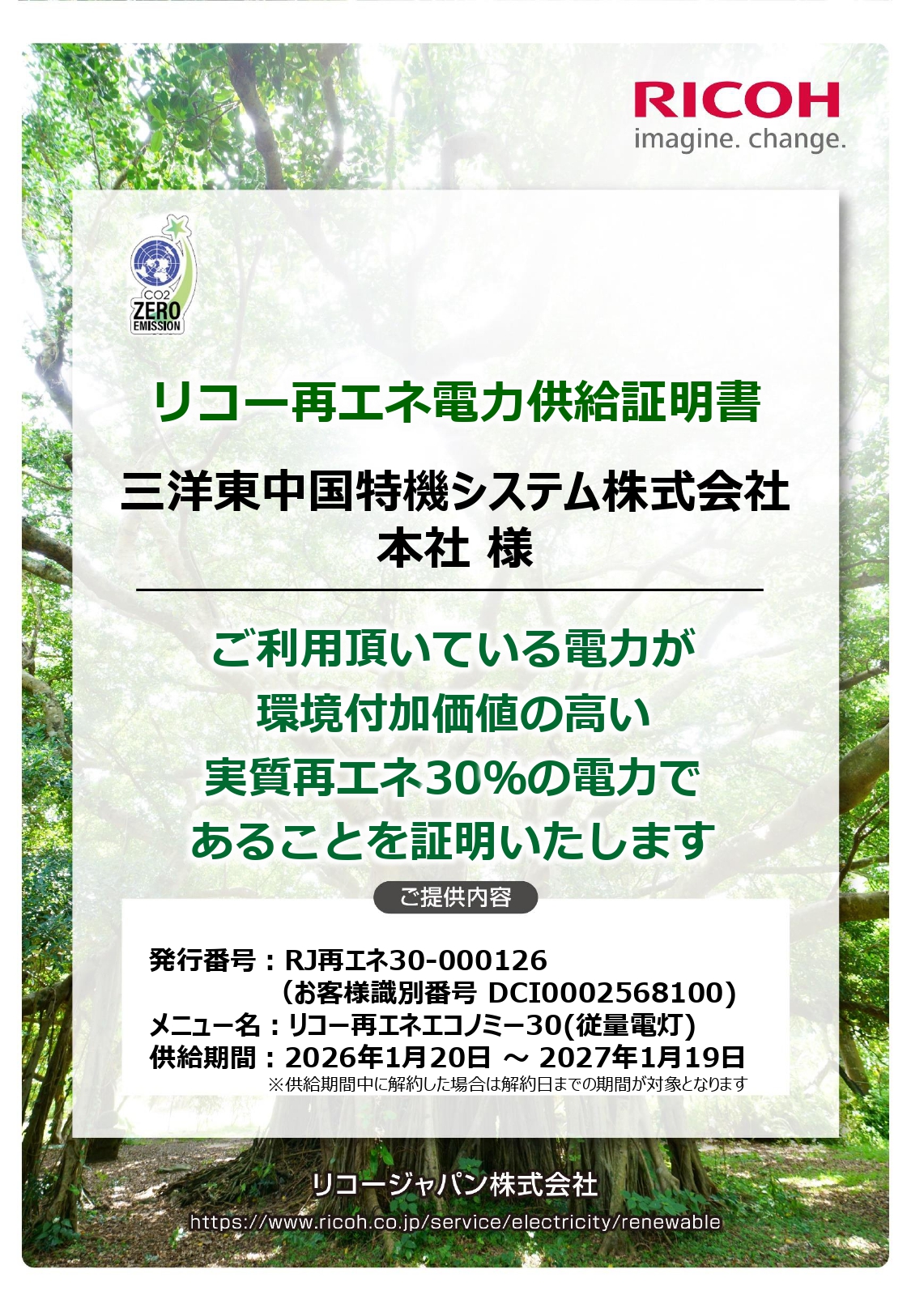 リコー再エネ電力供給証明書